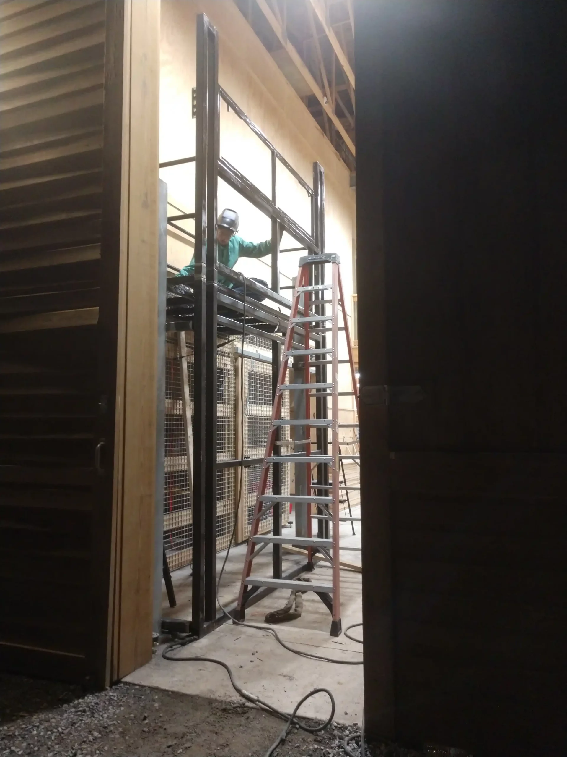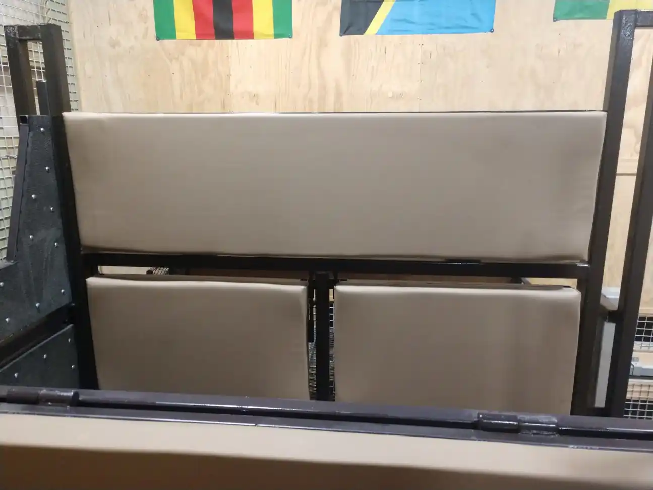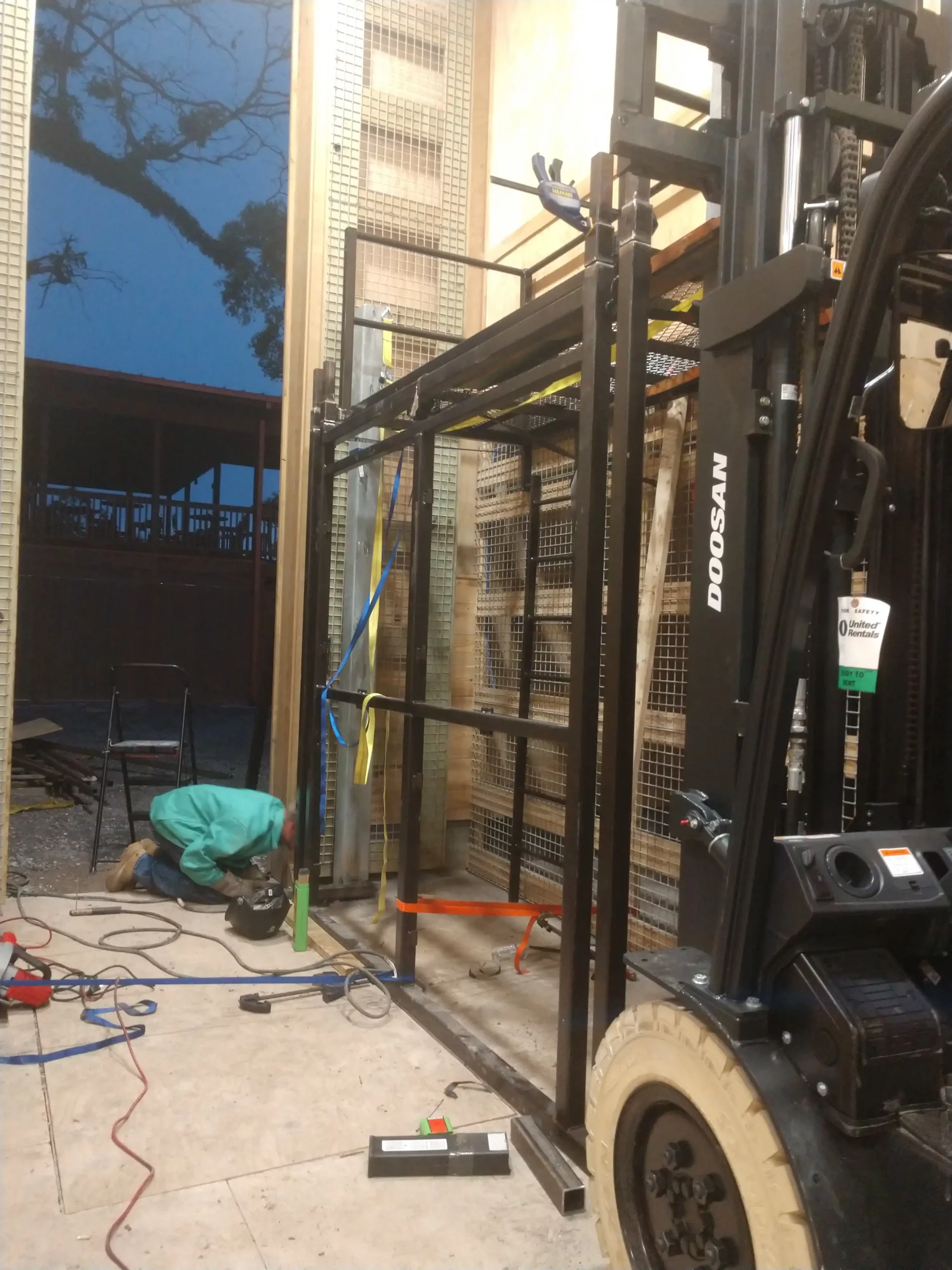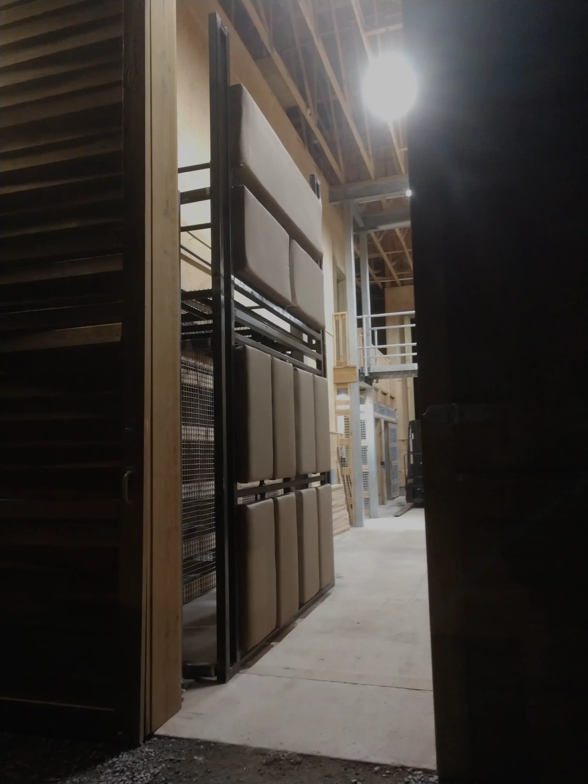 While our squeeze chute is customizable for each customer’s site and preferred design, our standard giraffe restraint device is fully featured. It includes digital scales and allows full body access to each giraffe through the use of 30 access doors. Each side has 11 doors and each end gate has 4 doors. One side of the squeeze chute pushes in to safely restrain the giraffe. To promote safety, forward motion into the chute, and decreased stress while standing inside, the squeeze chute does not have any overhead steel supports that a giraffe would have to pass under. With our restraining device it is possible to perform x-rays, ultrasounds, injections, vaccinations, tissue samples, blood draws, hoof trimming, newborn delivery, rectal palpation, cervical catheterization, etc from a safe and protected position.