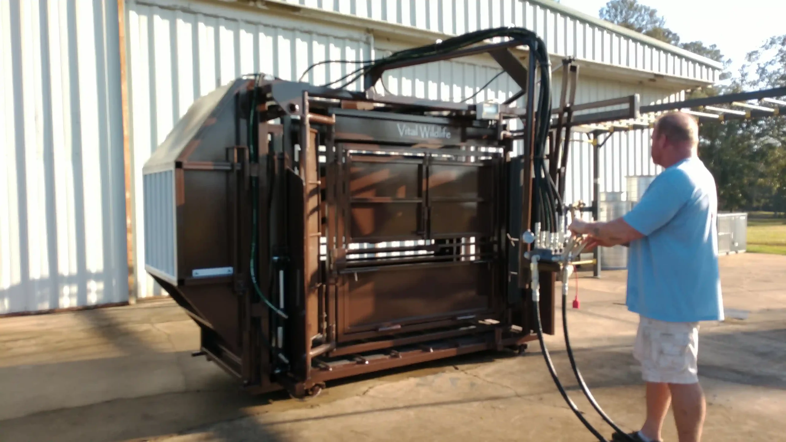 The hydraulic XLT was innovated to offer all of the required options for an efficient, effective, and humane bison chute as standard features with the added efficiency and decreased effort of hydraulics. Extra long and extra tall matters just as much as the double sided, double adjustable squeeze doors… this chute will fit a 300lb calf or a 3000lb bull. The goal of our bison squeeze chute is to maximize safety and effectiveness when handling bison, to the benefit of both the bison and the producer or zoo facility. This is achieved by using a species-specific approach in the design of all aspects of the bison squeeze chute. It is a given that any bison chute is constructed of heavy duty steel, but of equal importance, if not more so, is the need to incorporate how bison visualize their surroundings and react to stimuli around them, particularly in instances of high stress. This approach allows producers to work WITH the bison to achieve the desired result rather than forcing bison through a handling system and causing unnecessary losses due to stress and physical trauma.